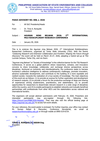 For queries and concerns, you may contact the conference secretariat through: